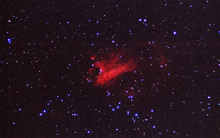 Comments: I tried some shots using the Canon 2X telextender as an experiment. The image scale is much nicer on this shot but the exposure times have really increased - as would be expected. In addition the bright stars seem to have taken on even bigger "blue halos". The use of this extender with an achromat is not working out very well.