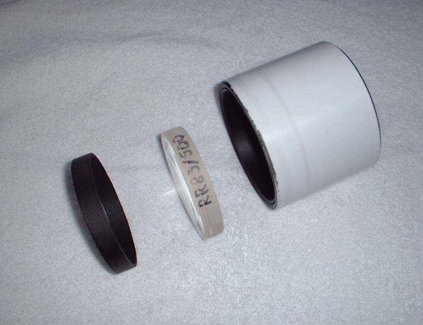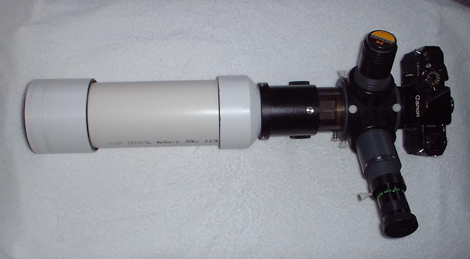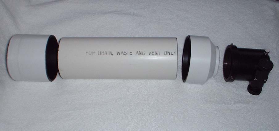 Well I can't leave well enough alone. I went out to Home Depot and picked up a few PVC fittings to play with while we are waiting to get together for a group kick off meeting. I already have a focuser and I want to see just how easy these will be to put together. This is when I discovered the first (and I hope only) problem. The instructions call for 90mm Outside Diameter (O.D.) PVC tubing. I measured some 3" tubing at Home Depot and it seemed to be close to 90mm O.D. I picked up a coupling, a 3" to 2" reducer and a length of 3" schedule 40 pipe. When I got these home I say that there was a small difference in the O.D. of the 3" pipe as opposed to the 90mm tubing. The 3" was just a little loose.