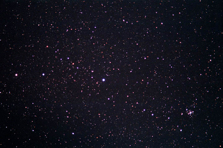 Comments: Kemble's Cascade is the line of stars running from upper left to lower right in the photo. At the lower right is the open cluster NGC 1502. I processed this differently than the one on the "Observing Project" page. This is my first use of Supra 400. These were mainly short exposures but so far I am pleased.