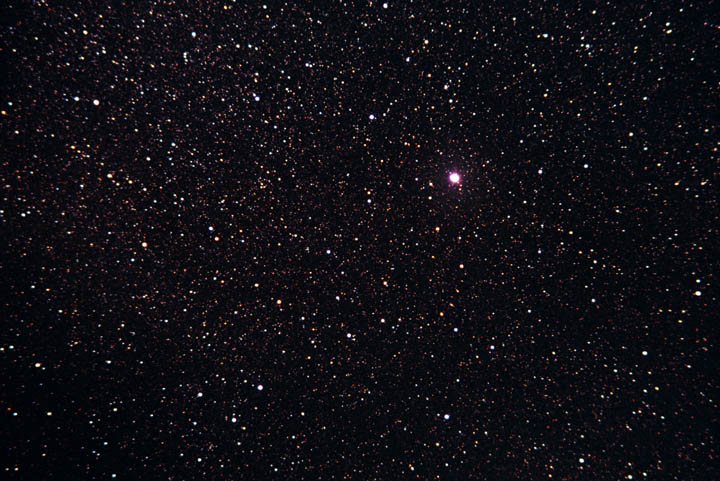 Comments: The blue component of this commonly looked at double stands out much more than the yellow one. Perhaps a shorter exposure would have been helpful.