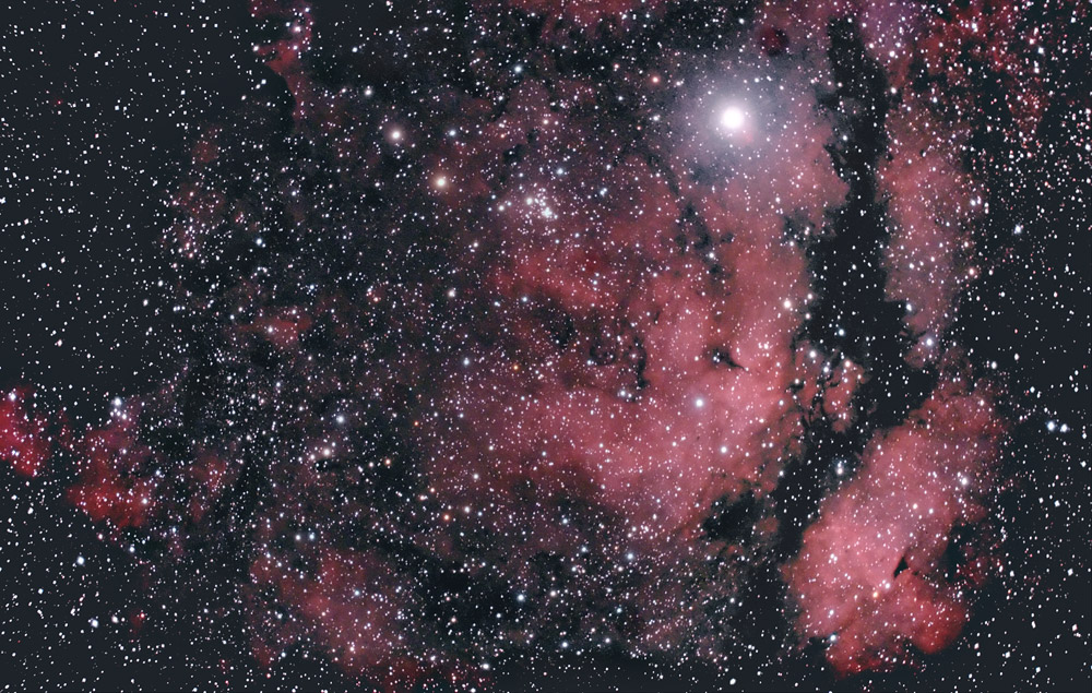 Comments: Even though I had to fight hazy clouds obscuring my image area this did not come out too bad. NGC 6910 makes an appearance in the upper center of the frame.