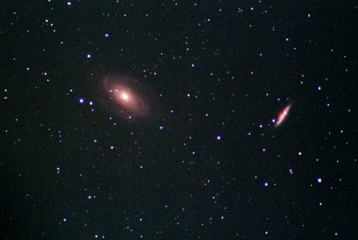 Comments: This is a digital stack of two 60 minute exposures. They were combined in Picture Window and processed in Adobe Photoshop Ver. 4.0. I was surprised that I could see both galaxies in the camera viewfinder.