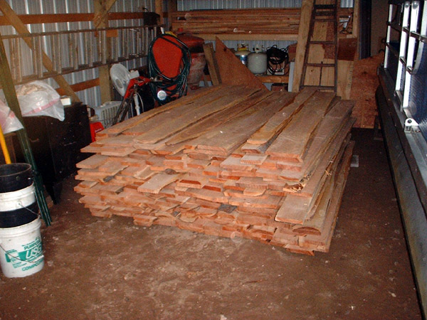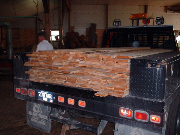 We headed up in June for a pickup weekend. We were getting about 2400 bf of the cherry to satisify the demand. We found that we could only hold about 1600 bf in Dave's truck and trailer. We had to partially unload at Dad's and head back to the sawmill for more.