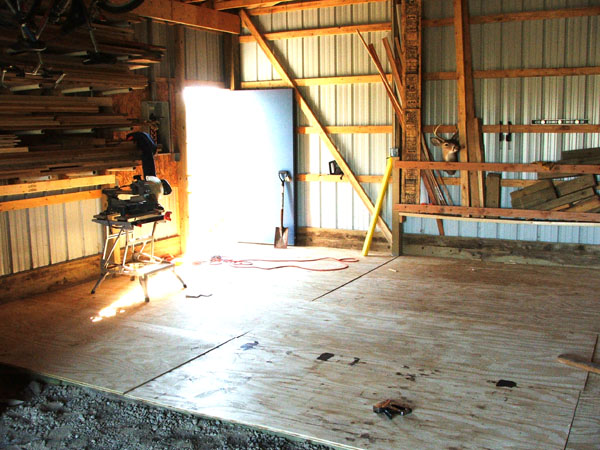 So I decided to take over half of the pole barn! In order to move machinery in I needed something other than the dirt floor that I had in there. I thought about a lot of solutions, concrete, patio stones and a wooden deck style floor. In the end I decided on the wooden deck.