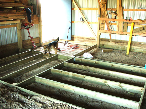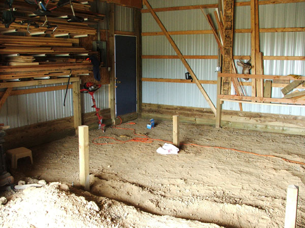 It went pretty smoothly, I dug out the existing gravel floor in the back of the barn with the help of neighbor Jeff and his tractor. Then I sunk some pressure treated posts to support the floor.