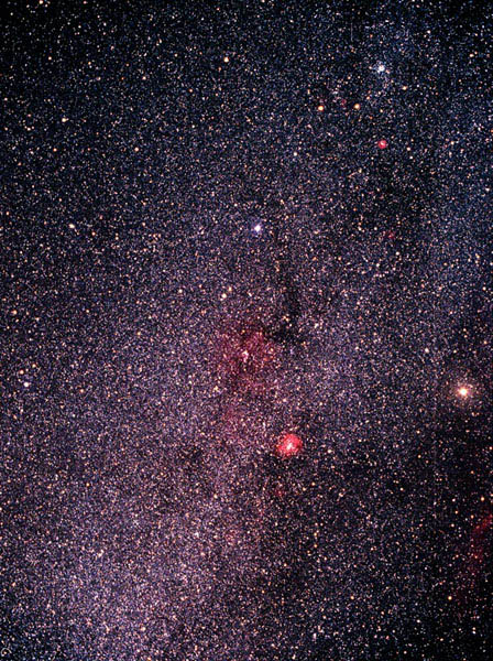 Equipment: Canon F-1, 50mm f21.4 lens set to f2.8, Equatorial Camera Platform manually guided using an Orion Short Tube 80.