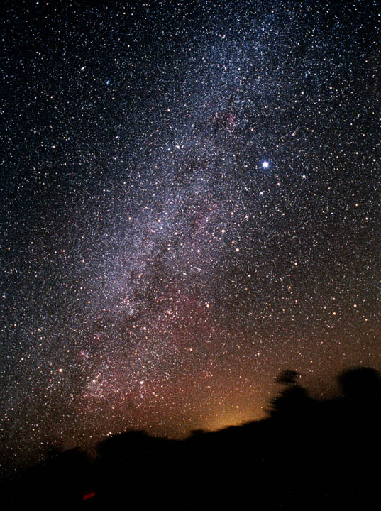 Equipment: Canon F-1, 24mm f2.8 lens set to f4, Equatorial Camera Platform manually guided using an Orion Short Tube 80.